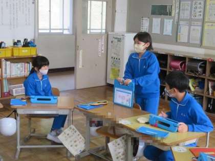 10/10 3・4年生 公開日 2023/10/10 更新日 2023/10/10 各学年から 3・4年生 図画工作科の授業の様子です。 今日は「まぼろしの花」の学習です。絵の具を使って作品作りをする予定ですが、どんなお花を描くのか、下書きイメージを学習用タブレットで作成して、お互いに伝え合いました。さまざまな「まぼろしの花」が描かれそうで完成が今から楽しみです。