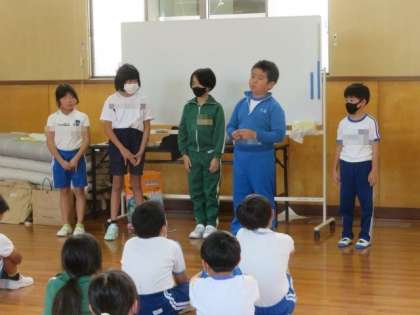 10/12 集合学習2 公開日 2023/10/12 更新日 2023/10/12 学校の特色ある活動 3・4年生の様子です。御蔵小学校に集合しました。 朝の会の後、初めに外国語活動を行いました。続いて、学級活動では「お別れ会」をしました。ティッシュを丸めて遠くまで投げる対決や、紙をできるだけ長く切る対決などの活動を楽しんだ後、元気よく応援合戦をしてみんなで盛り上がりました。帰りの会もしっかりと行い、楽しく充実した半日を過ごすことができました。