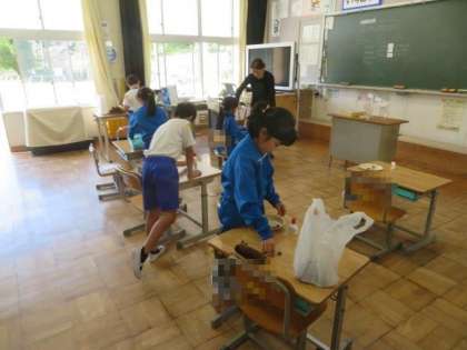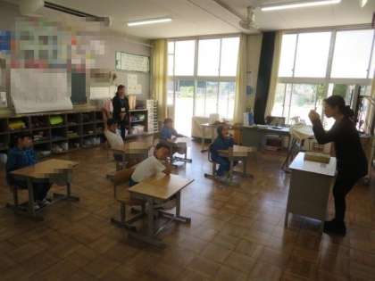 「あきさがし」で見つけた木の実などを使って、おもちゃをつくってきました。今日は、これまでにつくった「どんぐりごま」を、もっとよく回るようにするにはどうすればよいか、みんなで対話しました。いろいろなアイデアを出し合い、実際に作って試してみました。工夫してよく回るこまがたくさんできたようでした。