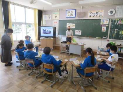 10/13 3・4年生 公開日 2023/10/13 更新日 2023/10/13 各学年から 3・4年生 外国語活動の様子です。 「What time is it?」の学習です。ALTから、時刻の表現方法を教えてもらいました。お互いに質問したり答えたりしながら、時刻の伝え方を覚えることができたようでした。少しずつ外国語特有の表現にも慣れてきているようです。この調子でがんばっていきましょう。