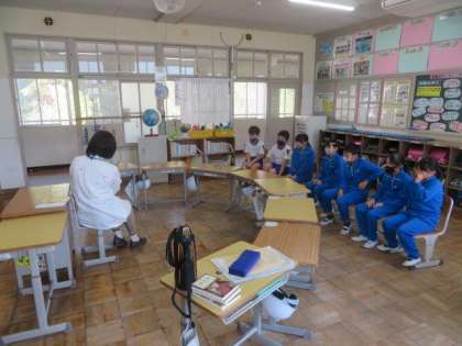 今日は狂言の「うつぼざる」のお話でした。みんな、頷いたりしながら、真剣にお話に耳を傾けていました。読み聞かせを通して、たくさんの素敵な物語と出会えることは、大蔵小学校の自慢の一つだと思います。これからも、この貴重な時間を大切にしていきましょう。