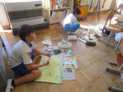 10/26 5・6年生 公開日 2023/10/26 更新日 2023/10/26 各学年から 5・6年生 図画工作科の授業の様子です。 今日は「読書感想画」に取り組みました。宮沢賢治の「鹿踊りのはじまり」を読んで、印象に残った場面を絵で表していました。みんなそれぞれに鹿を中心とした絵を描いていました。水彩絵の具を使って、丁寧に仕上げていました。芸術の秋にふさわしい活動ですね。作品の完成が楽しみです。