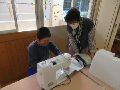 今日も地域ボランティアの方々にご来校いただき、ミシンの学習をしました。前回に引き続き、たくさんの方々に丁寧に教えていただき、安全にエコバッグの製作を進めることができました。地域の方々のご協力により、子どもが楽しく学ぶことができます。いつも本当にありがとうございます。今後ともよろしくお願いいたします。