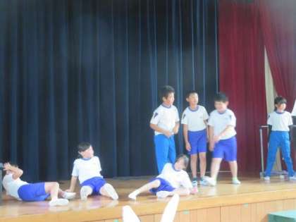 10/31 3・4年生 公開日 2023/10/31 更新日 2023/10/31 各学年から 3・4年生 学芸会の劇の練習です。 今年は忍者が出てくる劇に挑戦します。今日は集会室でセリフや動きの確認をしました。みんなで気を付けるとよいところを確かめながら、楽しい雰囲気でしっかりと練習ができました。来月の学芸会では、元気いっぱいの忍者たちの演技を楽しみにしていてください。