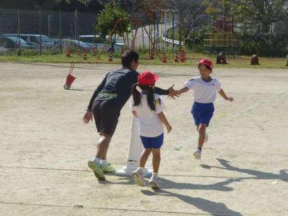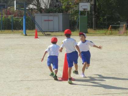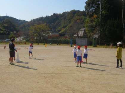11/2 1・2年生 公開日 2023/11/02 更新日 2023/11/02 特色ある学校づくり推進事業 1・2年生 体育科の授業の様子です。 今日は「リレーあそび」をしました。まっすぐに走り、目印のコーンを折り返して戻ってきて、次に走る友達にタッチして交代するという活動です。ただ走るだけでなく、折り返しやタッチなどさまざまな要素が入っていますが、体力向上補助指導員の指導のもと、みんな上手に取り組んでいました。気持ちの良い秋晴れの空のもと、元気いっぱい体を動かすことができました。