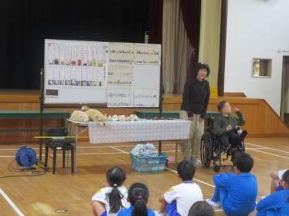 11/6 全校朝会 公開日 2023/11/06 更新日 2023/11/06 特別活動 全校朝会の様子です。 今日は、ひまわり学級の先生と児童のお話を聞きました。児童が大切にしている宝物をみんなに紹介してくれました。こうした活動を通して、お互いのことを理解し合えるのも小規模校の強みだと感じます。一人一人のよさを認め合いながら、これからもみんなで楽しい学校生活を送っていきましょう。