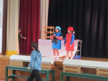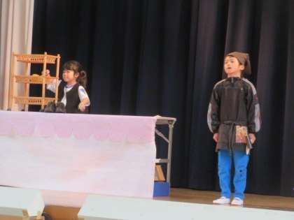 昨日の予行練習を終えて、見ている人にもっと伝わりやすくするためにはどうすればよいかを考えながら練習をしました。動きを大きくしたり、セリフをゆっくりはっきり言ったりすることを心掛けて演じていました。いよいよ学芸会まであと3日、最高の演技を発表できるようにあと少し頑張りましょう。