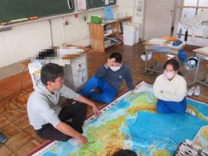 11/28 5・6年生 公開日 2023/11/28 更新日 2023/11/28 各学年から 5・6年生 社会科の授業の様子です。 今日は「第二次世界大戦」について学習していました。当時の各国の状況などを踏まえつつ、戦争を止めることはできなかったのかについて、みんなで対話しました。世界地図を広げ、当時の世界情勢を確認しながら、意見を出し合いました。過去の出来事をしっかりと学び、これからに生かしていってほしいと思います。
