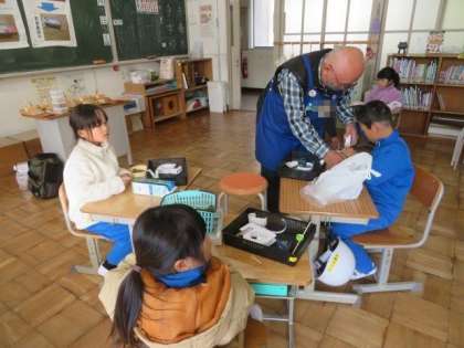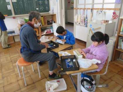 11/29 1・2年生 公開日 2023/11/29 更新日 2023/11/29 各学年から 1・2年生 「いろいろな音づくり」の学習です。豊田市のものづくり教育プログラムを活用した出前授業の様子です。今日は、身近な材料を使って、さまざまな楽器をつくって楽しみました。写真は「多目的ギロ」をつくって、演奏しているところです。普段使っている楽器の音色とはまた違った、いろいろな音を全身で感じながら学習することができました。