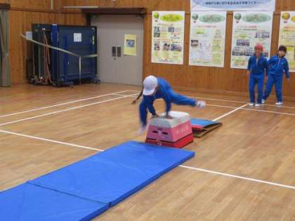 12/15 1・2年生 公開日 2023/12/15 更新日 2023/12/15 各学年から 1・2年生 体育科の授業の様子です。 今日は「なわとび」と「跳び箱」の学習です。初めに、いつものように、なわとびをがんばりました。その後、跳び箱とマットを準備して、跳び箱運動をしました。手をつく位置に気をつけながら、跳び箱を跳び、マットの上で転がるなどして体を動かしました。みんなで、動きを工夫しながら、楽しく運動できました。