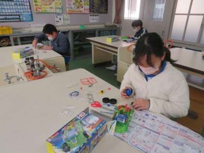 12/21 5・6年生 公開日 2023/12/21 更新日 2023/12/21 各学年から 5・6年生 理科の授業の様子です。 今日は「電磁石の性質」の学習です。これまでに、実験や考察を通して、電磁石の仕組みや性質について学んできました。今日は、電磁石を使ってモーターカーをつくりました。説明書を見ながら、部品を組み立てたり、モーターが動くように配線を整えたりしました。明日の理科の時間に全員が完成できるように頑張りましょう。