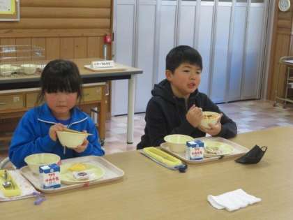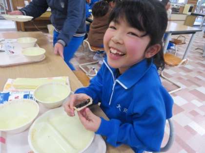 12/22 クリスマス献立 公開日 2023/12/22 更新日 2023/12/22 特別活動 今日の給食は、クリスマス献立です。チキンライス、オムレツ、ブロッコリーのスープ、そしてセレクトデザートでした。セレクトデザートは、豆乳プリンタルト・チョコタルトの2種類から選べます。みんな、いつもにも増してよい表情でおいしそうに食べていました。冬休み前の最後の給食、みんなで楽しくいただくことができました。冬休み中も、しっかりと食事をとって、健康に過ごしましょう。