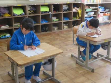 1/9 書初め大会 公開日 2024/01/09 更新日 2024/01/09 学校行事 書初め大会の様子です。 冬休みが終わり、今日から大蔵っ子が元気に登校してきました。今日は、冬休み前から練習してきた成果を披露する、書初め大会を行いました。1・2年生は硬筆です。お手本をよく見て、まちがえないように気をつけながら、丁寧に書いていました。