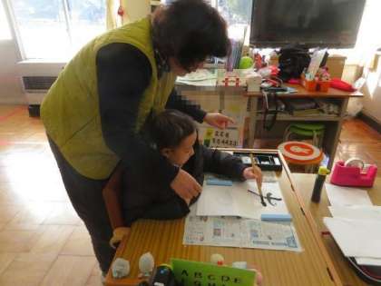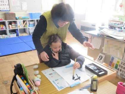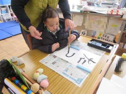 辰年にちなんで「たつ」の文字を書きました。やる気十分で、意欲的に取り組んでいました。「つ」の曲線部分もしっかりと書けていました。よい字が書けて、とてもうれしそうな様子でした。