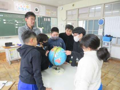 今日は日本の地形について学習しました。山が多いなど、国土の特徴について、対話しながら確認していきました。また、地球儀や地図帳を使って、イギリスの国土との比較をすることで、日本の国土の特徴について理解を深めました。