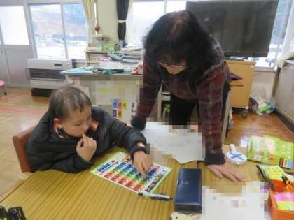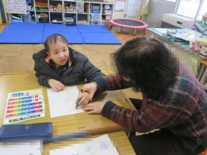 1/18 ひまわり学級 公開日 2024/01/18 更新日 2024/01/18 各学年から ひまわり学級 国語科の授業の様子です。 今日はひらがなの学習です。プリントを使って、文字を書く練習をしました。「お」や「よ」など、曲線が出てくる文字も、丁寧になぞることができました。合間に、五十音表を使って、先生にいろいろなことを伝えていました。文字の理解を深めるとともに、対話力も高めることができました。