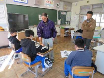 1/26 5・6年生 公開日 2024/01/26 更新日 2024/01/26 特色ある学校づくり推進事業 5・6年生 書写の授業の様子です。 今日も、地域講師の方にお越しいただき、ご指導いただきました。丁寧に一人一人の字を見て、適切なアドバイスをしてくださいました。教えていただいたことを意識して練習することで、どんどん上達していく様子が見られました。