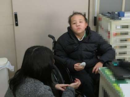 今日も元気よく職員室へ挨拶に来ました。五十音表や予定表を使って、今後のスケジュールや休日の過ごし方などについて教えてくれました。語彙が豊富になり、たくさんの情報を上手に使えるようになりました。