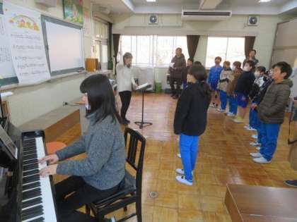 2/9 合唱練習 公開日 2024/02/09 更新日 2024/02/09 各学年から 合唱練習の様子です。 今日は、音楽室で合唱練習をしました。前半は、1〜5年生で卒業を祝う会に向けた練習、後半は全校で卒業式の歌の練習をしました。今年は、卒業式では全校での合唱を予定しています。みんなで、声と心を一つにして、素敵な合唱を作り上げていけるよう、引き続き練習をがんばりましょう。