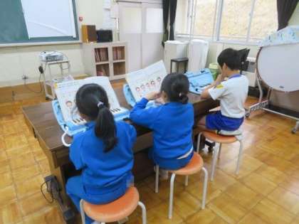 2/15 1・2年生 公開日 2024/02/15 更新日 2024/02/15 各学年から 1・2年生 音楽科の授業の様子です。 今日も、みんなで楽しく歌を歌ったり、楽器を演奏したりしました。先生の後に続いて歌ったり、リズムを合わせて鍵盤ハーモニカを演奏したりできました。歌声いっぱい、笑顔いっぱいの楽しい1時間の学習でした。