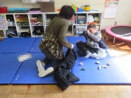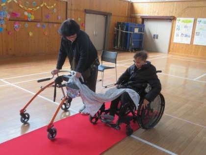 2/28 ひまわり学級 公開日 2024/02/28 更新日 2024/02/28 各学年から ひまわり学級 自立活動の授業の様子です。 今日は「衣服の着脱」「立つ・座る運動」に加えて、「卒業式に向けた練習」を行いました。上着を脱いだり着たりする動きや、立ったり座ったりする動きがとても上手にできるようになりました。その後、集会室に移動して、赤い絨毯の上を移動する練習をしました。この調子で、卒業に向けてがんばって準備を進めていきましょう。