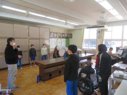 今日は卒業式に向けた歌の練習を行いました。音楽が専門の教頭先生も参加してくださいました。姿勢や、歌詞の意味、息継ぎの仕方など細かなところまで丁寧に教えていただき、子どもたちの歌声ががらっと変わりました。この調子で、卒業式に向けて引き続き連取をがんばっていきましょう。