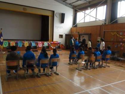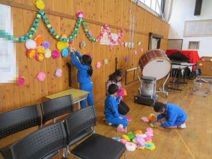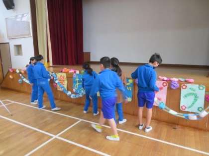 3/7 卒業を祝う会準備 公開日 2024/03/07 更新日 2024/03/07 特別活動 卒業を祝う会の準備の様子です。 1〜5年生で、明日に予定している卒業を祝う会の準備を行いました。会場の飾りつけや椅子ならべなどを分担して行った後、みんなでリハーサルを行いました。会の流れを確かめながら、隊形移動や台詞などの確認をしました。明日の会では、6年生に感謝とお祝いの気持ちがしっかりと伝えられるとよいと思います。