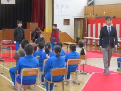 3/14 卒業式予行 公開日 2024/03/14 更新日 2024/03/14 学校行事 卒業式予行の様子です。 19日の卒業式に向けた練習を行いました。ほどよい緊張感の中、しっかりと取り組めました。6年生は、入退場や卒業証書授与など、一つ一つの動きがとてもよくなってきました。1〜5年生も、今日の予行を経て、卒業式に向けての気持ちが高まってきたようです。ここからのさらなる頑張りが楽しみです。来週は、きっとすばらしい卒業式ができることと期待しています。