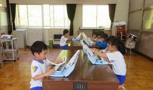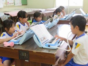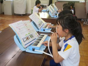 5/21 1・2年 音楽科 公開日 2024/05/21 更新日 2024/05/21 お知らせ 鍵盤ハーモニカで『どんくりさんのおうち』『なかよし』を練習ました。1年生は鍵盤ハーモニカの練習を始めたばかりです。『どんぐりさんのおうち』ではドとソの音を吹きました。2年生は、昨年の経験を生かして全曲を演奏しました。『なかよし』ではドレミ、レミファ、ミファソの音階を繰り返し練習しました。