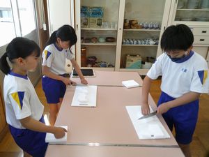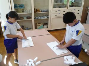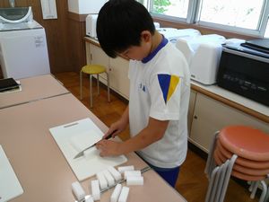 5/21 5・6年 家庭科 公開日 2024/05/21 更新日 2024/05/21 お知らせ 包丁の使い方を練習しました。切る材料は【メラミンスポンジ】です。包丁を上手に使わないと、スポンジがつぶれてしまいます。包丁を握らない手は「猫の手」にして、どの子も慎重に包丁を動かしていました。