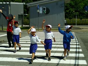 5/29 1年 交通安全教室 公開日 2024/05/29 更新日 2024/05/29 お知らせ 豊田市交通安全学習センターにて『交通安全教室』を実施しました。飛び出し実験を見たり、クイズに答えたり、安全な歩き方を練習したりしました。横断歩道では「手をあげて、右左右、車よし」しっかり確認して渡りました。