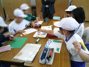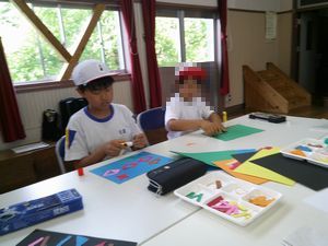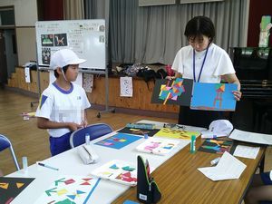 6/6 あすけ集合学習(中学年) 公開日 2024/06/06 更新日 2024/06/06 学校行事 中学年は明和小学校に集まりました。 1時間目の学活では「自己紹介ゲーム」「共通点さがし」「連想ゲーム」を行いました。久しぶりに会った仲間との距離を縮めました。 2時間目は図画工作科で「組み合わせて作ったよ」に取り組みました。長方形と三角形の2つの形を組み合わせて作品(新しい形)を作り上げるのです。どの子も楽しく作業に取り組み、友だちと感想を交流しました。