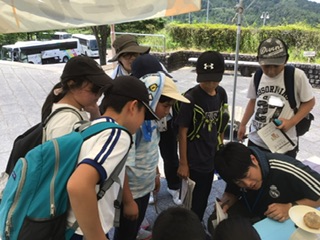 キャンプ2日目 公開日 2024/06/14 更新日 2024/06/14 各学年から ウォークラリー チェックポイントで課題をクリアし,ゴールを目指します。 地図を見て、ルートを確認しながら歩きました。