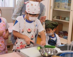 6/21 1・2年 生活科 公開日 2024/06/21 更新日 2024/06/21 お知らせ 学校の畑で収穫したキュウリの浅漬けを作りました。全員が包丁を使ってキュウリを食べやすい大きさに切り、密閉袋にいれて塩を振って揉みました。授業の終わりに一切れずつ試食しました。