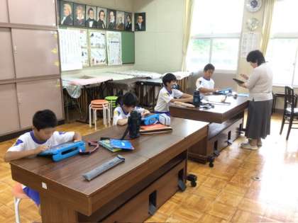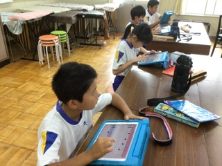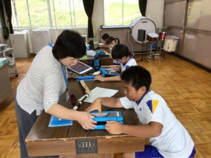 3,4年生は、音楽で、学習タブレットを使い、音楽づくり(作曲)の楽しさを学びました。