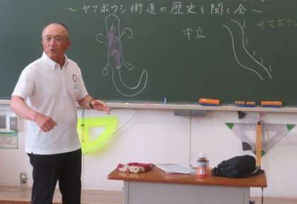 昨日に引き続き、講師さんから『ヤマボウシ街道の歴史』をお聞きしました。今日の講師さんは、ヤマボウシ街道の整備が始まった時に大蔵小学校にいらっしゃった方です。スタートから3年間の様子についてお話しいただきました。貴重なお話をありがとうございました。
