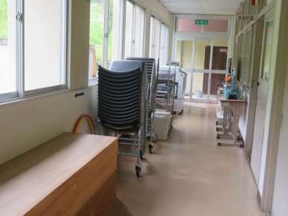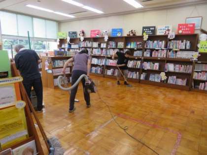 今日は大そうじの日です。ワックスがけのために、公務手さんと校務支援員さん、校内整備員さんが準備を進めました。図書室と多目的室の掃除と水拭きを行い、後はワックスがけを待つのみです。ワックスがけは、午後、子どもたちが行います。