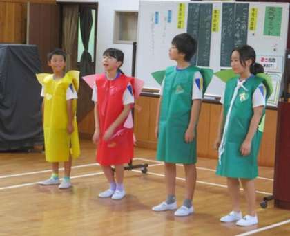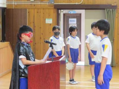 7/19 元気サミット 公開日 2024/07/19 更新日 2024/07/19 お知らせ 夏休み前最終日の今日、さわやかタイムに元気サミットを行いました。3色グループごとに、一人ずつ目標への取組を発表し、自分たちの生活を振り返りました。その後、委員会からの連絡がありました。すこやか委員会は、夏休みに向けて「3色パワーを意識した朝食」を❝食の妖精❞が呼びかけました。ぬくもり委員会は、読書週間に本をたくさん読んだ子や、様々な分野の本を読んだ子の表彰を行いました。