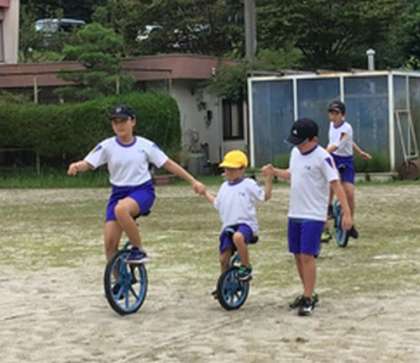 9/4 一輪車練習 公開日 2024/09/04 更新日 2024/09/04 学校の特色ある活動 いきいきタイム(20分の休み時間)の様子です。10月19日に開催される運動会に向けて、一輪車熱が高まってきました。高学年の子が1年生の子をサポートし、練習に励んでいます。
