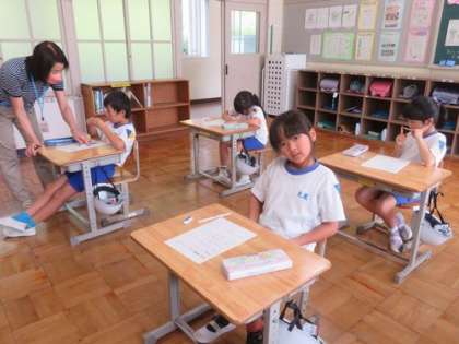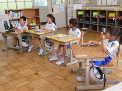 避難訓練を振り返り、地震が起きた時にどう行動したらよいかを考えました。