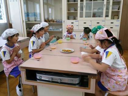 9/17 1・2年 生活科 公開日 2024/09/17 更新日 2024/09/17 各学年から 学校の畑で育てたかぼちゃを使い、「かぼちゃスープ」と「焼きかぼちゃ」を作りました。おいしくいただきました。