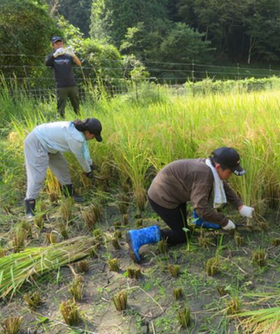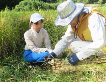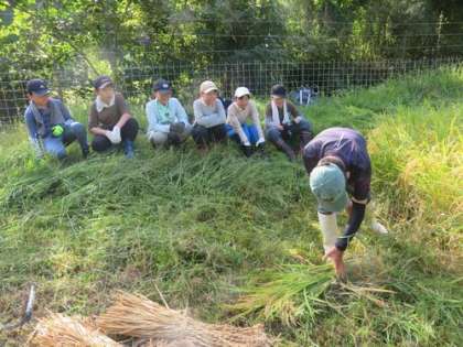 9/19 5・6年 稲刈り 公開日 2024/09/19 更新日 2024/09/19 各学年から 社会科の学習の一環として、5月に田植えをした田んぼの稲刈りを行いました。鎌での稲刈りはどの子も初めて。手刈りの大変さを、身をもって体験しました。