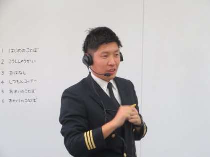 全日空パイロットの中川泰彦氏をお招きし、『いなかからだって がんばれば なんだって できる!!!』と題してご講演をいただきました。映像を交えた楽しいお話に、子どもたちのわくわく感がどんどん高まりました。