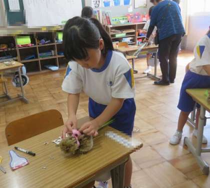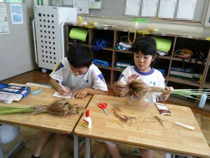9/30 1・2年 生活科 公開日 2024/09/30 更新日 2024/09/30 各学年から すすきで人形を作りました。形を作り、目や鼻をボンドでつけ、リボンを結びました。どの子も、かわいらしい人形が出来上がりました。