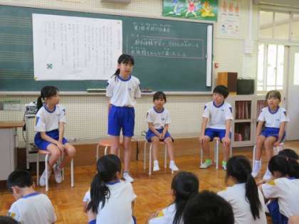 10/1 全校対話集会 公開日 2024/10/01 更新日 2024/10/01 学校の特色ある活動 本日のさわやかタイムは、今年度3回目の「全校対話集会」です。対話のテーマは『都市体験学習で、たくさんの人がいる水族館をみんなで楽しむルール』。1・2・4・5・6年の児童1名ずつがテーマについて意見を交流しました。