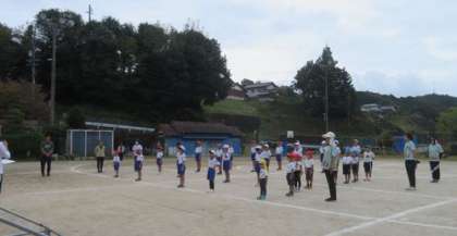 3時間目に、こども園の子たちも一緒に「開・閉会式」の練習をしました。