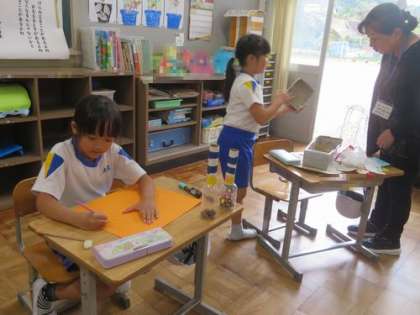 『あきのあそびランド』の準備をしています。