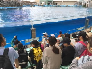 イルカのパフォーマンス、もうすぐ始まりそうです。