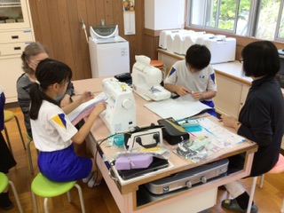 ミシンボランティアの方のマンツーマン指導により、ミシンを使った制作が順調に進みます。