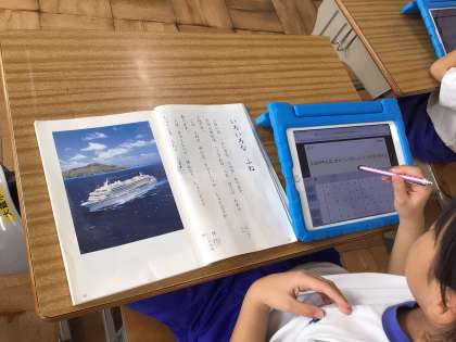 1年生 国語科 公開日 2024/10/30 更新日 2024/10/30 各学年から 学習用タブレットを使って、『いろいろなふね』をまとめています。 1年生も少しずつ、タブレットの活用に慣れてきました。